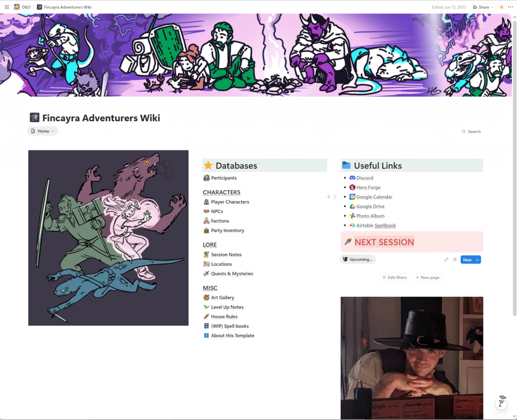 My players and I also built a Notion wiki for our campaign, which includes pages detailing each important NPC, a breakdown of the items players are carrying, and of course, copious notes from each session. It’s incredible to have, and enables me as a DM to be extra considerate of the details that come up in each session!
